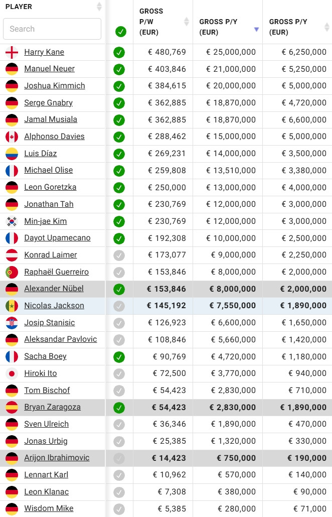 Đính kèm là 11 mức lương hàng năm cao nhất của Bayern: