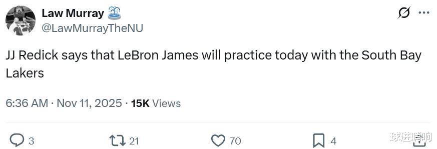 Theo báo cáo trước đây của phóng viên Shams của ESPN, James dự kiến sẽ ra mắt mùa giải vào giữa tháng 11. Khả năng cao là sau khi Lakers kết thúc đợt 5 vị khách liên tiếp này, James sẽ trở lại và sát cánh cùng 5 trợ thủ vô địch lớn để phấn đấu cho chức vô địch thứ 5 trong sự nghiệp.