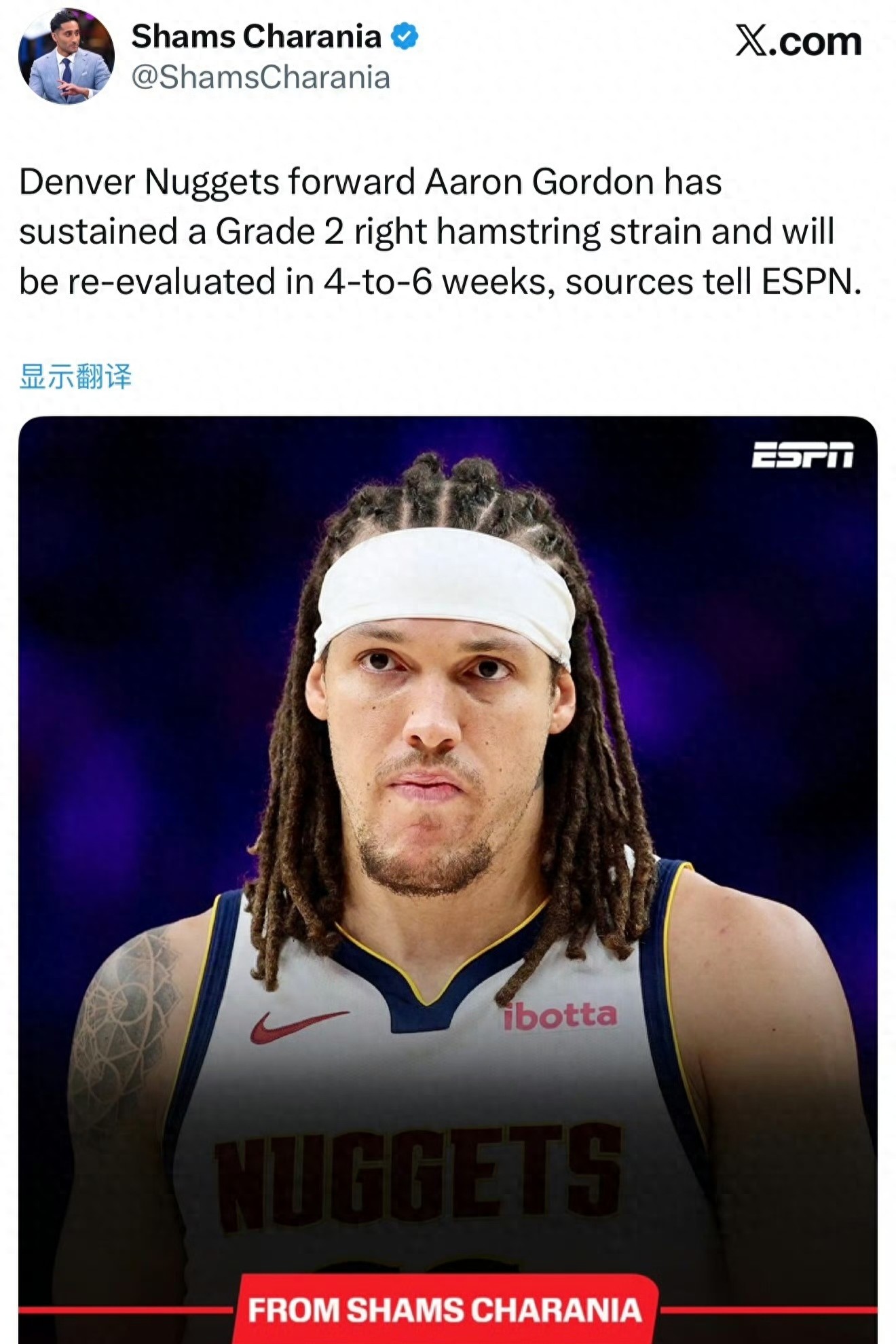 tiền đạo chủ lực Aaron Gordon của đội đã bị căng cấp độ hai ở gân khoeo bên phải và sẽ được đánh giá lại sau 4-6 tuần.